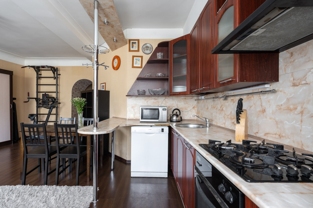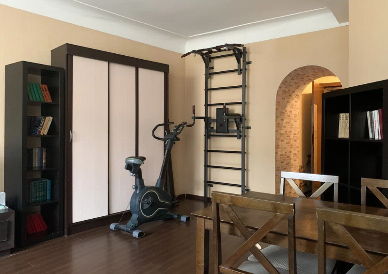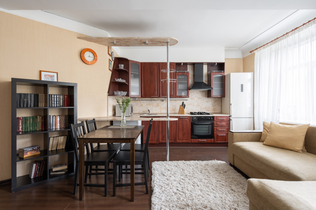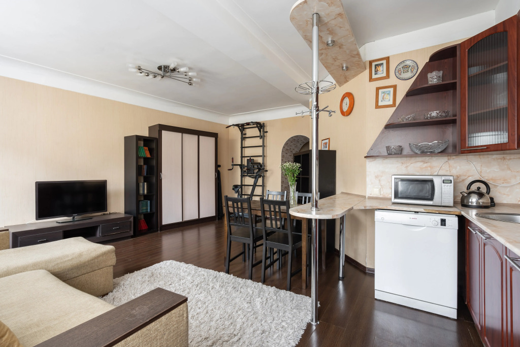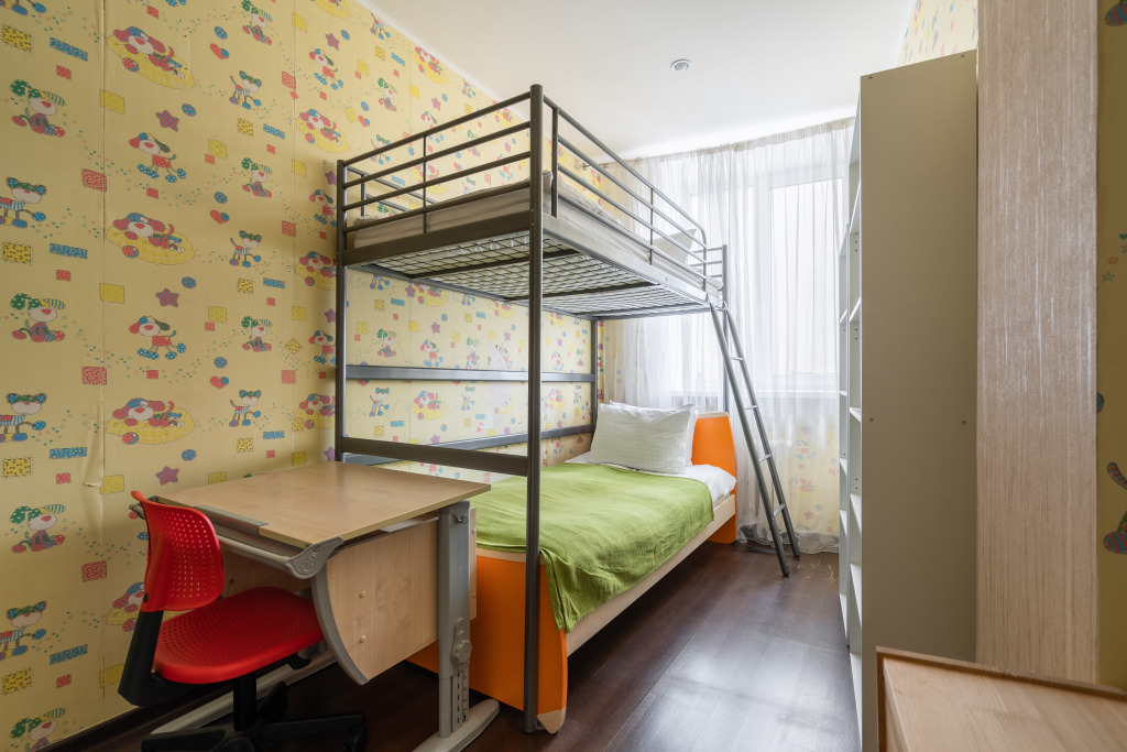 Sleeping places: 2+2+1+1 (double bed in the bedroom, double sofa in the living room, bunk bed).