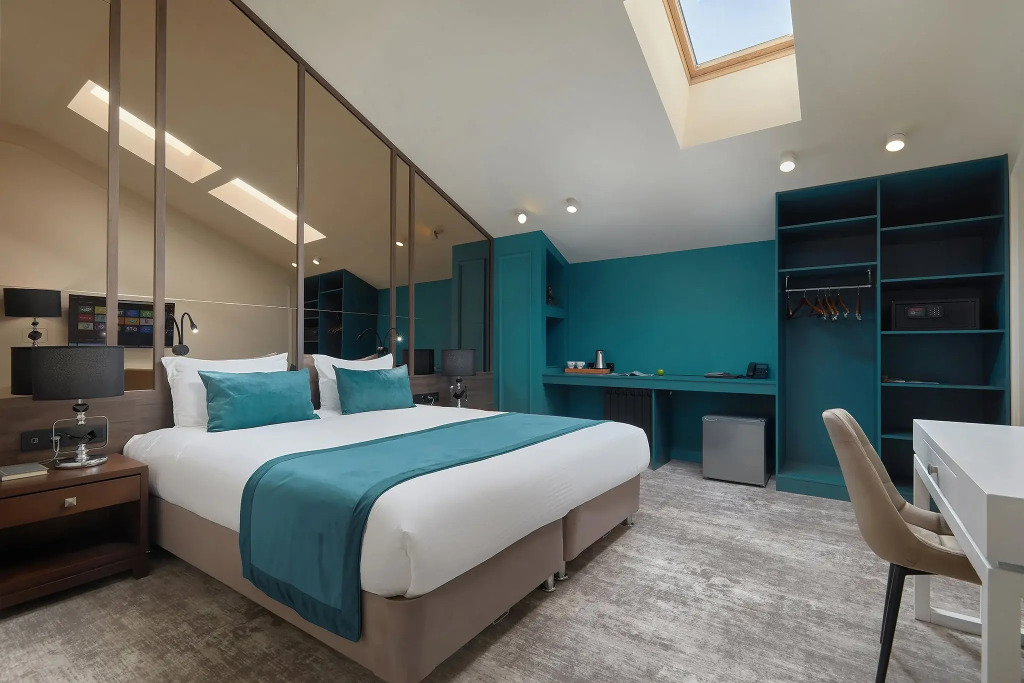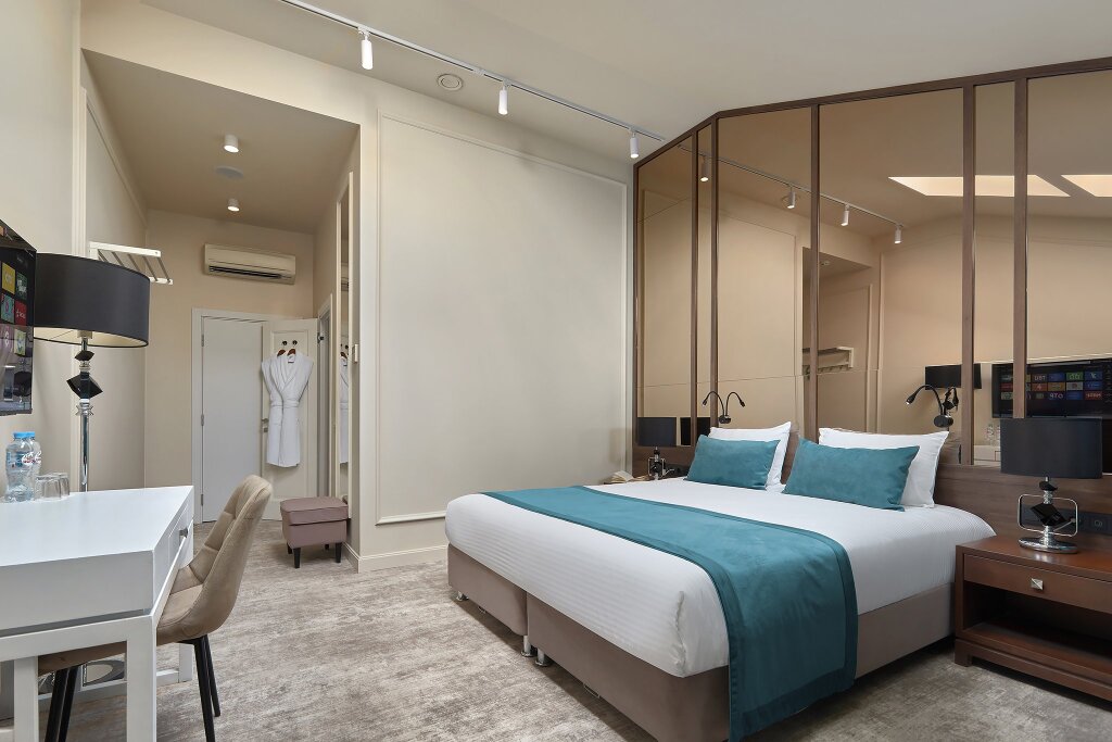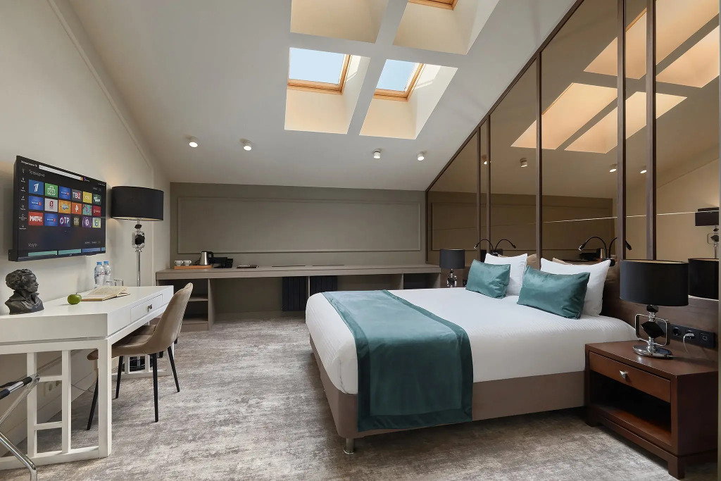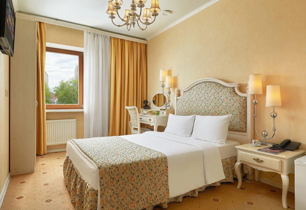 In the room, for you, there is a TV, a mini-bar and a bathrobe. The room equipment depends on its category.