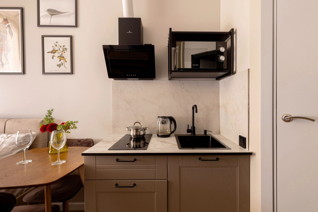 If you want to feel like you’re at home no matter where you are, choose this — apartment «Nevskiy 105 Kompaktnaya Studiya Apartments» is located in Saint Petersburg. This apartment is located in 3 km from the city center. You can take a walk and explore the neighbourhood area of the apartment — Ploshchad Vosstaniya, Nevsky Prospect and Alexander Nevsky' Lavra.