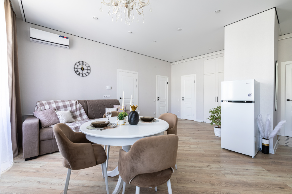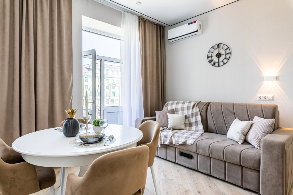 Free Wi-Fi on the territory will help you to stay on-line. If you travel by car, there’s a paid parking zone at the apartment. Additional services that the apartment offers to its guests: ironing. The staff of the apartment speaks Russian.