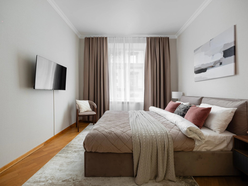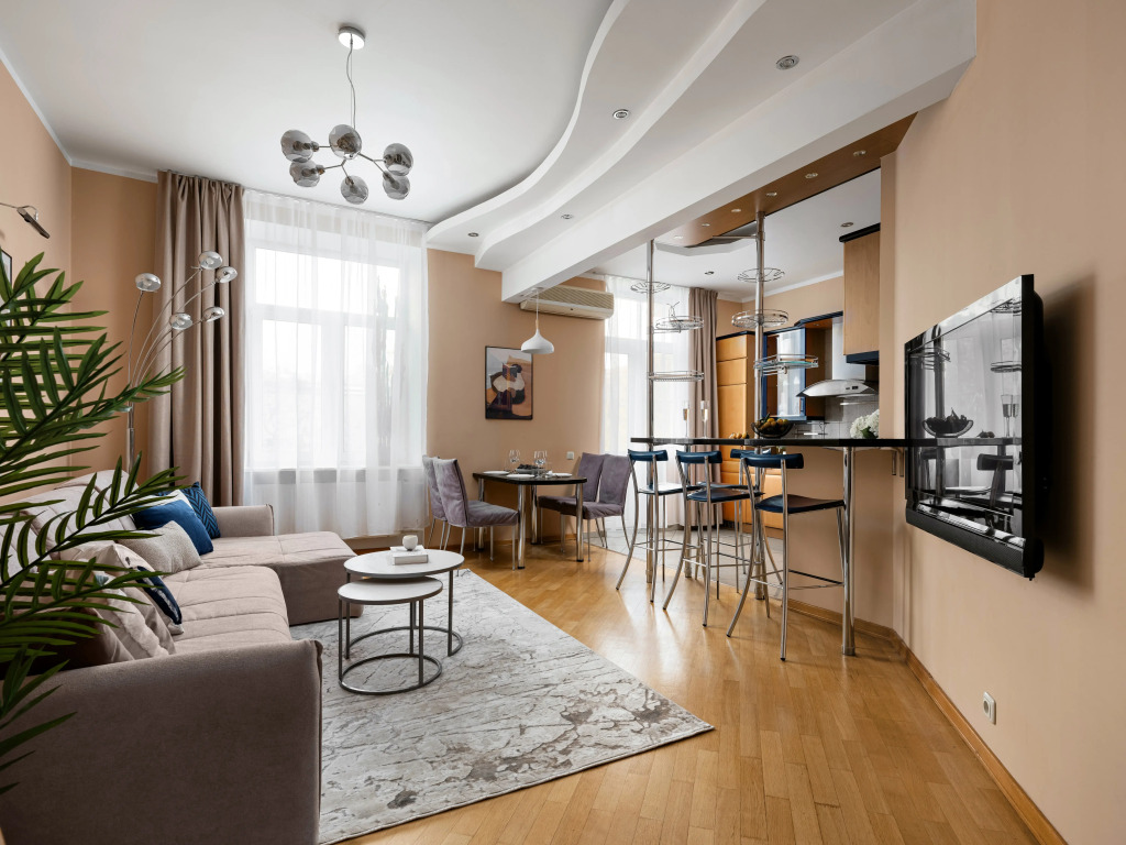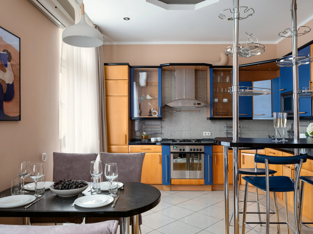 At the guests’ disposal, there’s also private check-in and check-out and ironing. The staff of the flat speaks English and Russian.