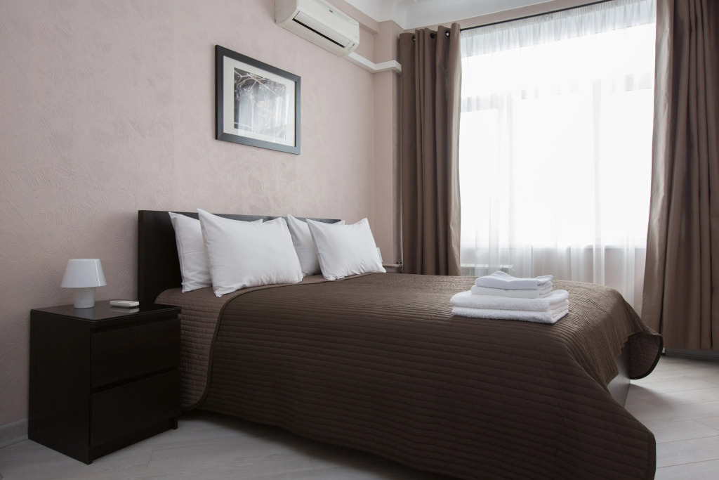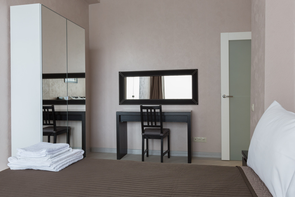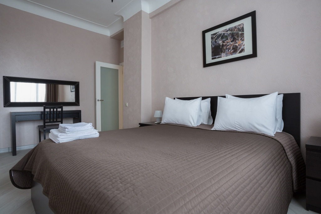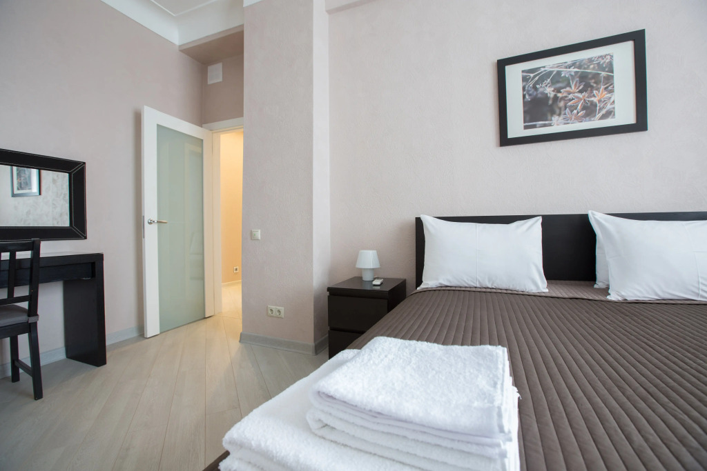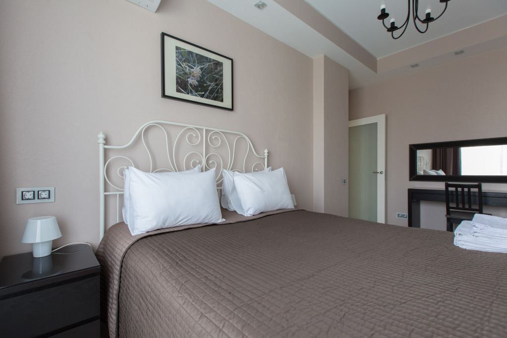The apartment has two separate bedrooms, a living room and a balcony. Especially for car travelers, parking is organized, which is available upon prior request. Convenient for guests with disabilities: an elevator takes guests to the upper floors. The apartment staff speaks English and Russian. The room is comfortably furnished and equipped with everything you need to relax after a long and eventful day.