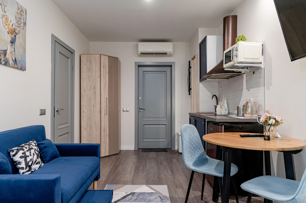Want to be always on-line? Wi-Fi is available. You can take your pet with you for the journey. Pets are allowed for an additional cost. Accessibility: there is an elevator/lift. The staff of the apartment will be happy to talk to you in English and Russian.