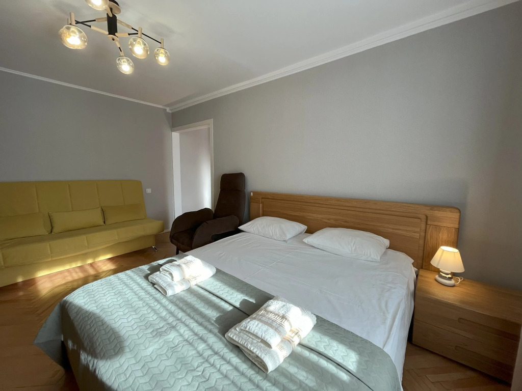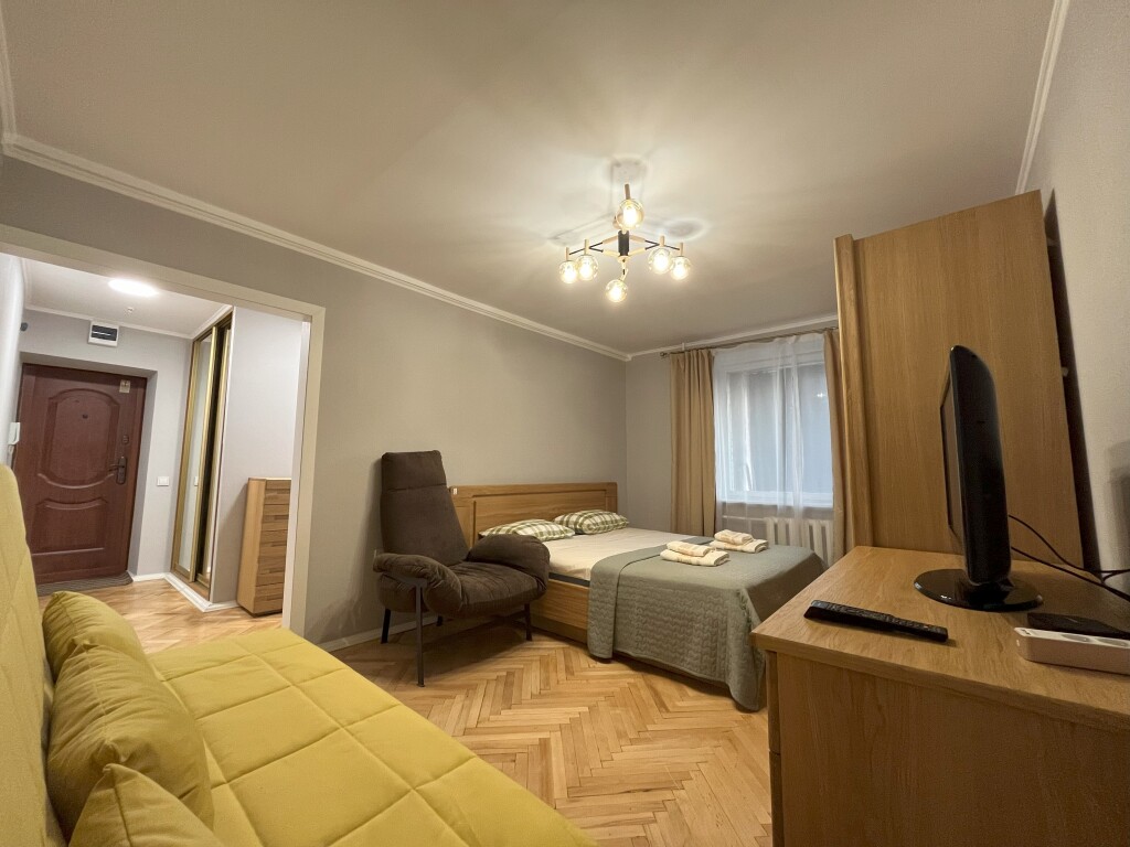 Free Wi-Fi on the territory will help you to stay on-line. Accessible for guests with disabilities: the elevator helps them to go to the highest floors. Additional services that the apartment offers to its guests: private check-in and check-out and ironing. The staff of the apartment will be happy to talk to you in English and Russian.