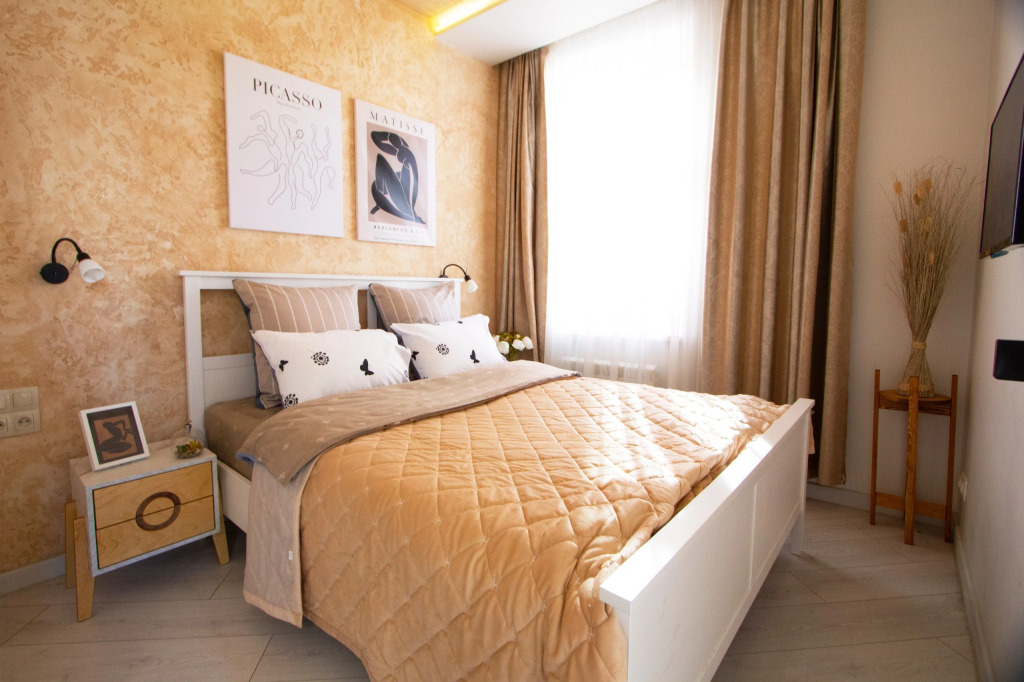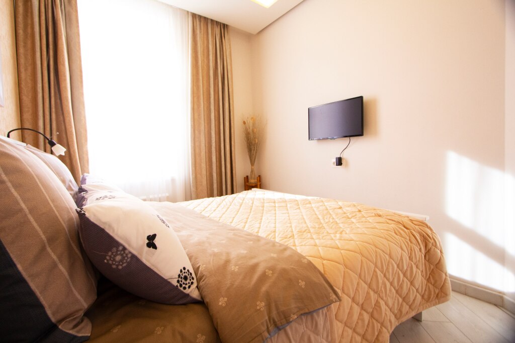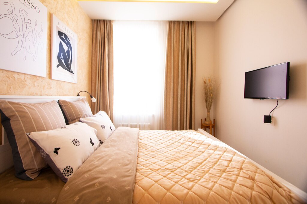 Free Wi-Fi on the territory will help you to stay on-line. At the guests’ disposal, there’s also ironing. The staff of the apartment speaks Russian.
