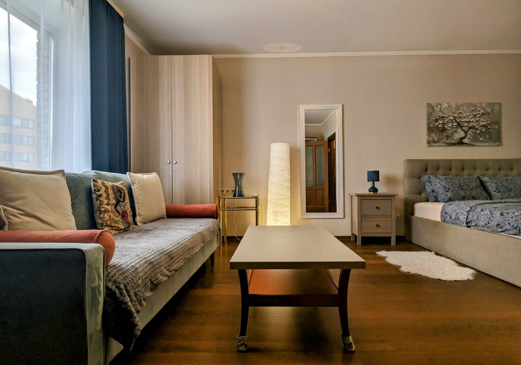 Svobodna Ruzheyny Pereulok Flat is located in Moscow. Places nearby: Smolenskaya, Melnikov House and Arbat.