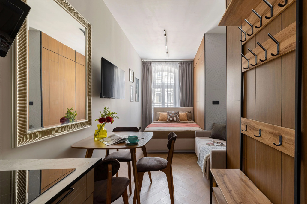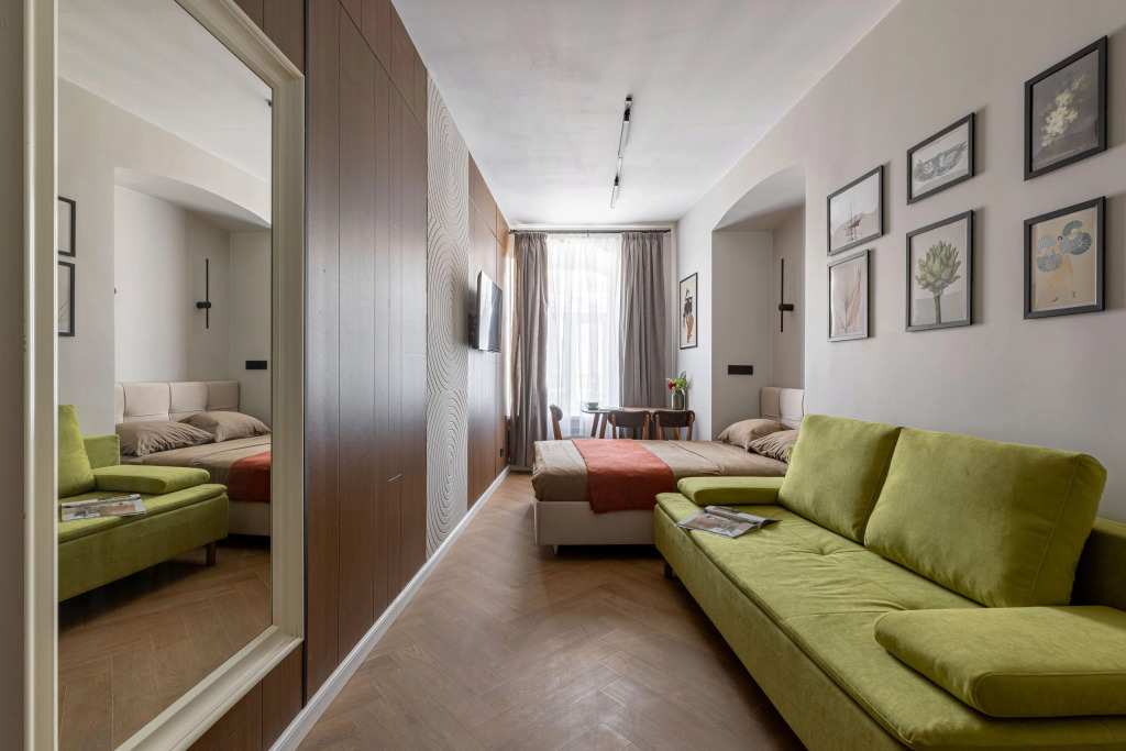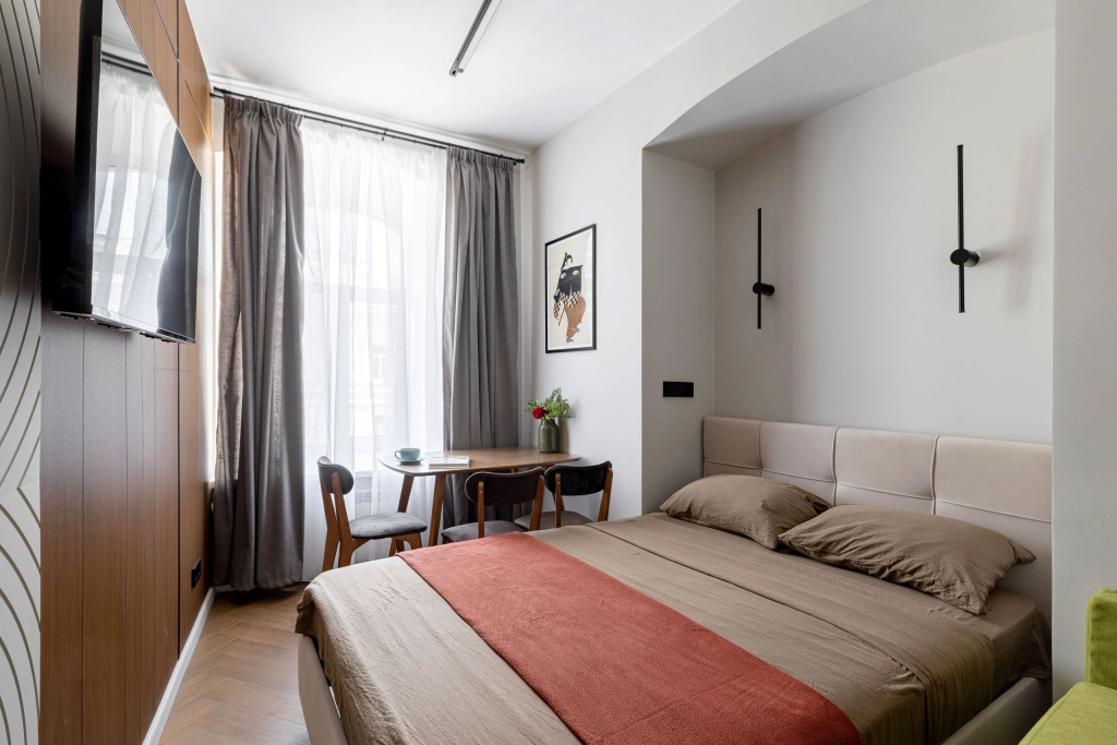 Free Wi-Fi is available on the territory. Ask for more information when checking in. Pets are welcome here. They are allowed for an additional cost. At the guests’ disposal, there’s also private check-in and check-out and ironing. The staff of the apartment speaks English and Russian.