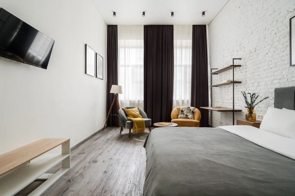 Upon arrival, Russian citizens must provide the original (not a copy) of one of the following documents: a valid Russian domestic or international passport, or driver's license. Front desk opening hours 08:00 - 22:00. A baby cot and a high chair are paid separately in the amount of RUB 2000.00. Reporting documents for business travelers are provided. Cashless payments are possible. Visa invitations and registration are available for foreign guests. Cleaning with bed linen change is done every 5 days, the date and time are agreed with the administrator. Smoking and parties are prohibited in the apartments. Call reception hours: 08:00 AM - 22:00 PM. Late check-out and early check-in are possible by prior arrangement. For stays from December 31 to January 7 (inclusive), an increased security deposit of RUB 40,000.00 is required.