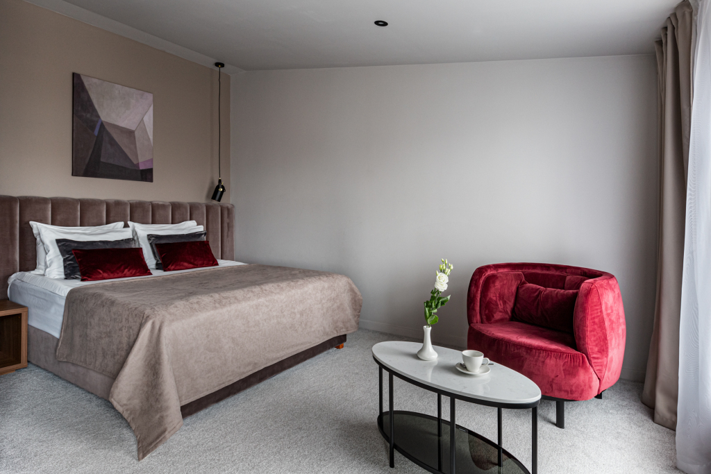 Each room has climate control, plasma TV, mini-fridge, tea station for making tea and coffee, hair dryer, laptop safe, slippers for each guest, towels, terry bathrobes, a set of cosmetic accessories.