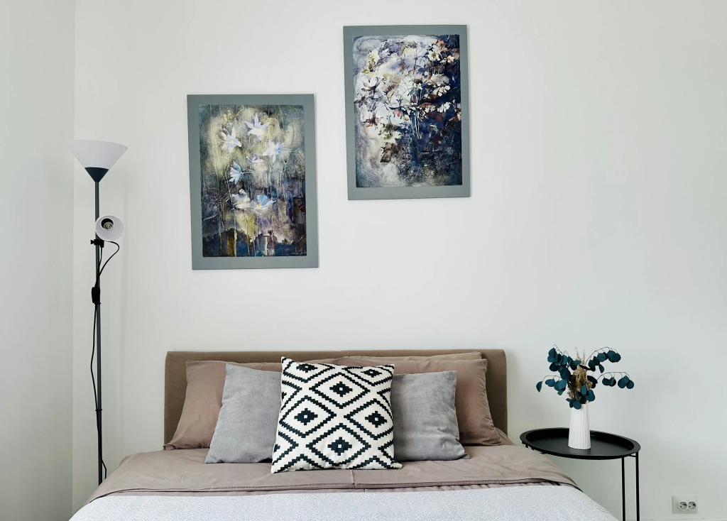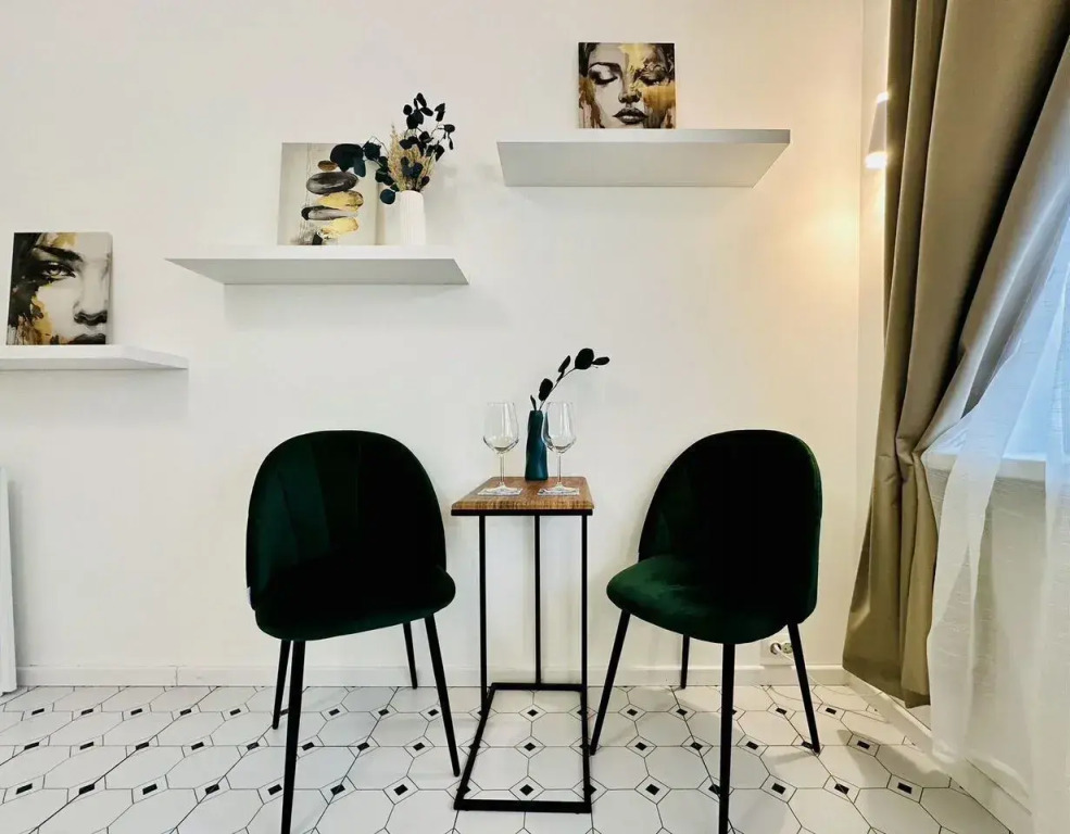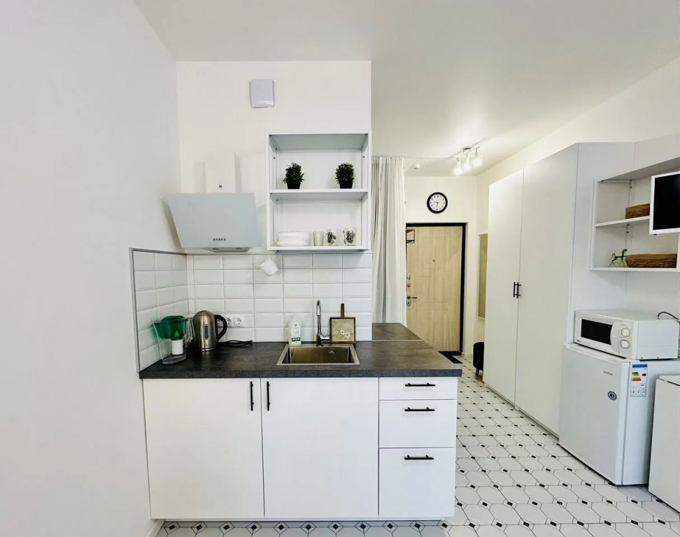 For the convenience of guests there is: a bed with an orthopedic mattress, a topper and bed linen. The kitchen is equipped with a refrigerator, microwave, hood, induction hob, kettle, dishes and a washing machine. Basic amenities are provided: tea, coffee and sweets as a welcome set, two towels for each guest, shampoo, shower gel, soap, washing powder, salt, sugar, sunflower oil and disposable slippers.