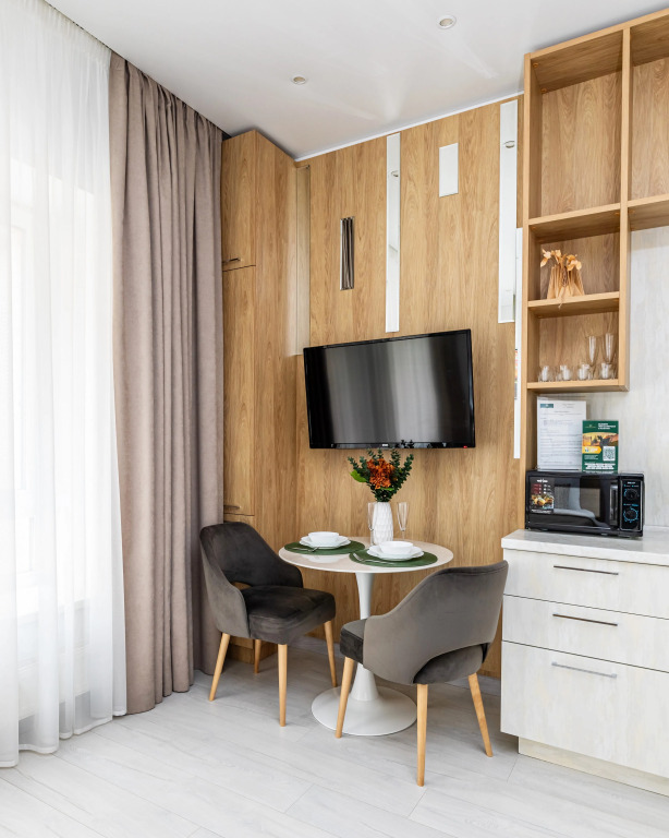 The room is warmly decorated and has everything you need to have a rest after a long eventful day. There is a TV. Please note that the listed services may not be available in all the rooms.