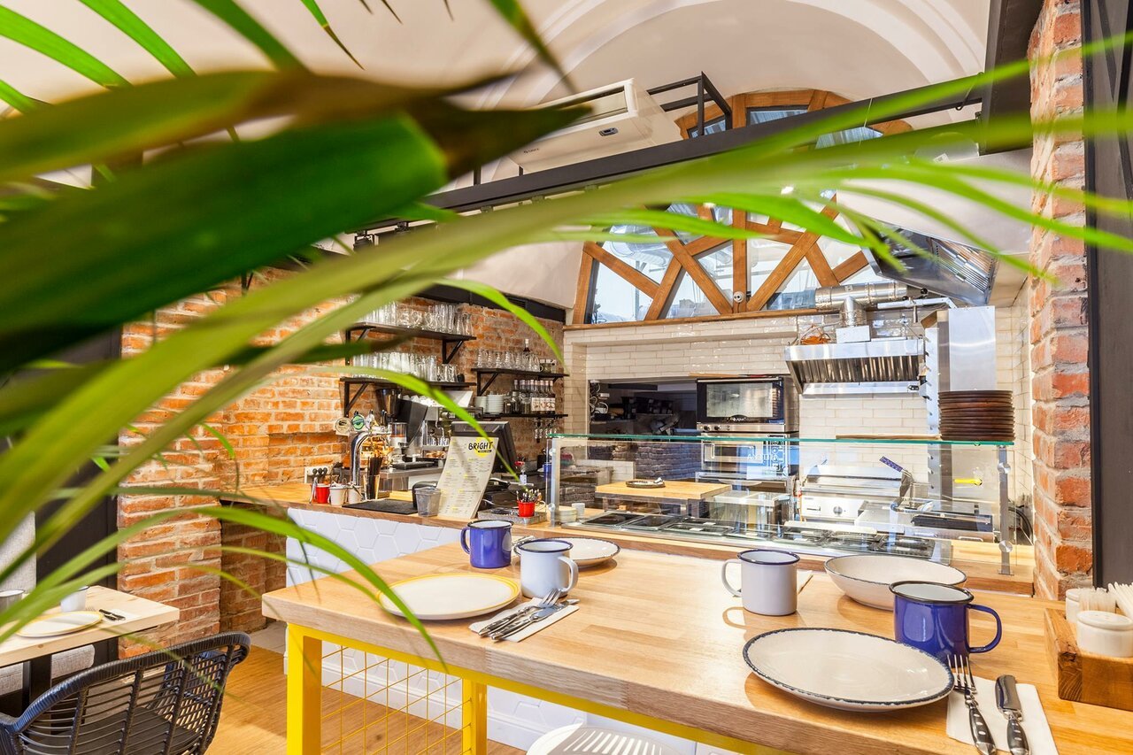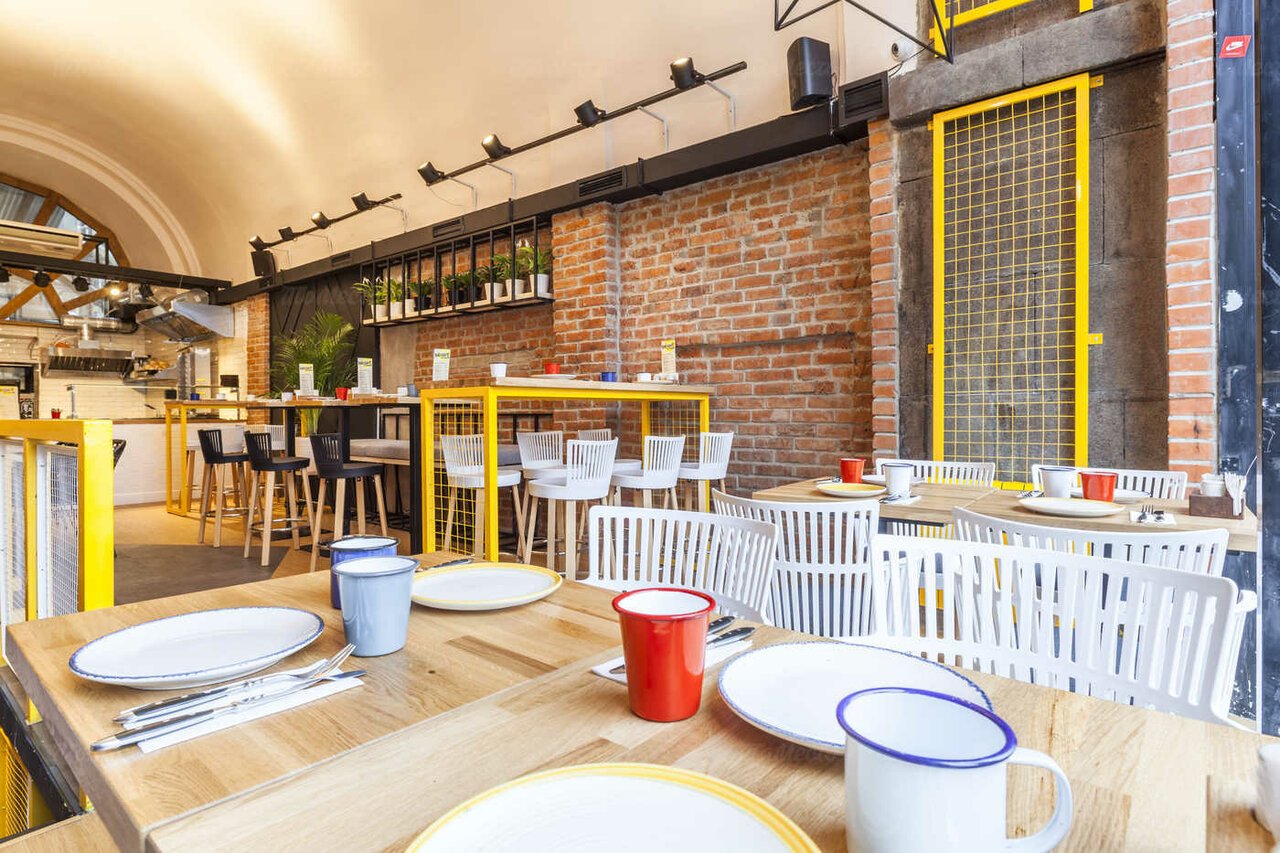 * A restaurant with Middle Eastern cuisine is located on Tverskaya Street. The menu features traditional Israeli cuisine, mixed with snacks from the Middle East. The restaurant has a spacious, bright room with panoramic views of the city. An outdoor veranda is open during the warmer months.