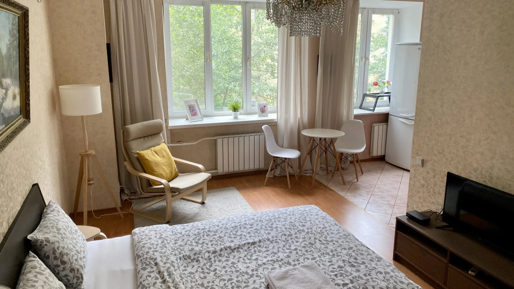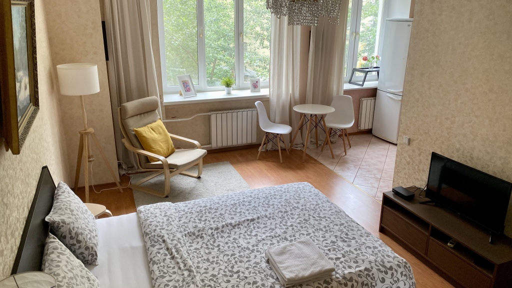 If you want to feel like you’re at home no matter where you are, choose this — apartment «Na Sukharevskoy Apartments» is located in Moscow. This apartment is located nearby from the city center. You can take a walk and explore the neighbourhood area of the apartment. Places nearby: Sukharevskaya, Pharmacy Garden and Chistye Prudy.